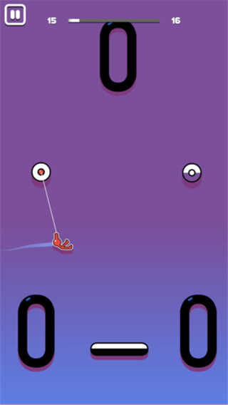 2、点击屏幕,用你的钩子钩住火柴人,松开屏幕让他走