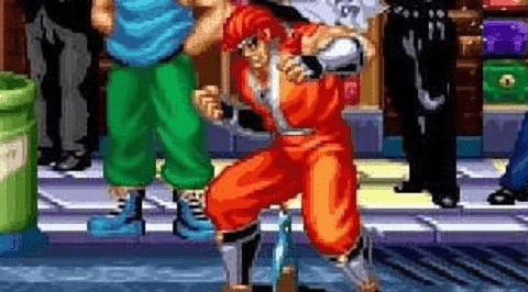 2、游戏中的背景画面也会有人不时抛出各种武器;在武器处按压↓+A可以捡起来,用武器按A键攻击对手,按A键+B/↓+C可以扔掉目前的手持武器。在手持武器状态下输入,前+A可以使武器特殊攻击.
