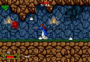 (3)与一些清版动作游戏不同,场景不断前进,无法返回。在《卡达叙传说》中,游戏分为四个极其庞大的场景,这些场景由三个传送门连接。每个场景中的小场景都是“无缝连接”是的,这在1989年是一项非常惊人的技术。而且在《卡达叙事传说》中,完成某些任务是必要的。这些特征决定了卡达叙事的独特性。他不仅像《伊苏3》一样具有高度的RPG可玩性,而且通过强大的街机技能,也反映了惊人的血腥画面效果(VGA Mode-X,128色),动作流畅,音效逼真,音乐难忘。