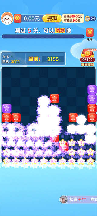 3、通过上面的关卡挑战,玩家也会随机获得红包奖励。