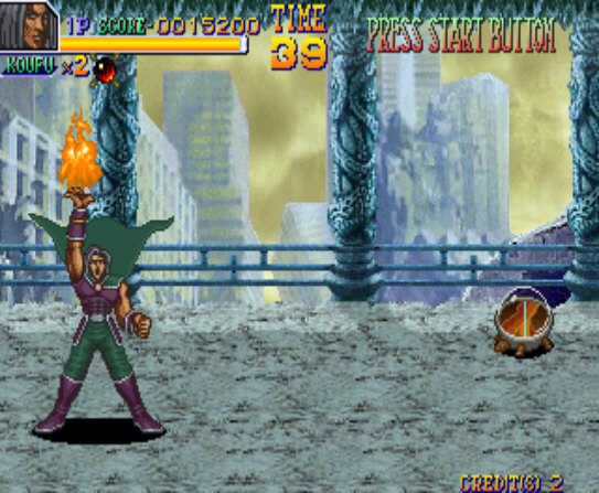 《征战者》是一款经典的动作闯关类街机游戏,本作是由Noise Factory公司制作。游戏为玩家们提供了五个人物角色,这些人物角色都具有不同的格斗技能和必杀技,玩家可以从中任意挑选自己喜欢的人物来进行游戏。此外游戏还具有原创的魔法系统,玩家可以使用道具来释放不同的魔法。