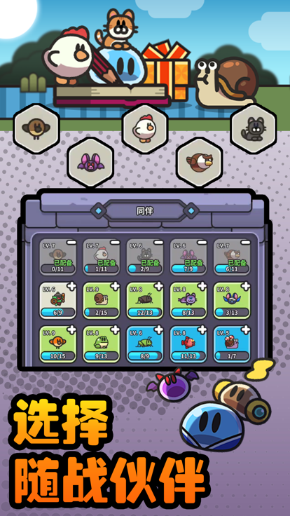 收集同伴!和投掷鸡蛋的鸡仔、钝化敌人的蜗牛,还有可爱的猫咪一起并肩作战吧。
