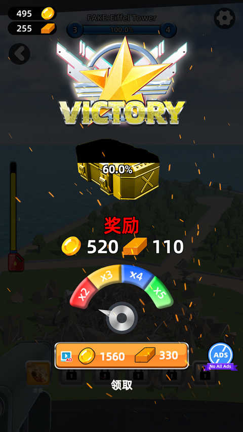 4、成功破坏后,可通关,并获得部分金币和道具奖励。