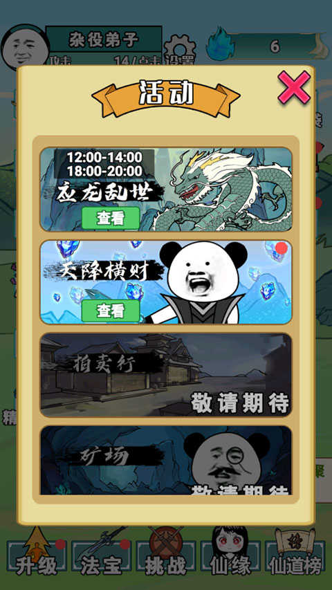 2、升级可以花真气升级筋骨、灵根、悟道、武术;