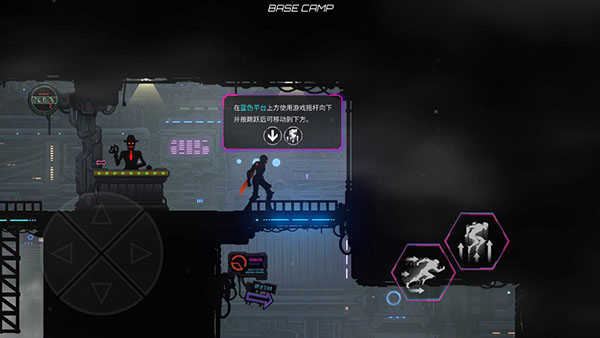 1、点击跳跃可以移动到蓝色平台下方的平台上方;