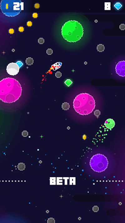 2、控制小球在星际间遨游,吃掉钻石的同时避免触碰到太多的障碍物,超多的角色等待着你的解锁,像素复古画风和清新的音乐,该你带来轻松的游戏环境