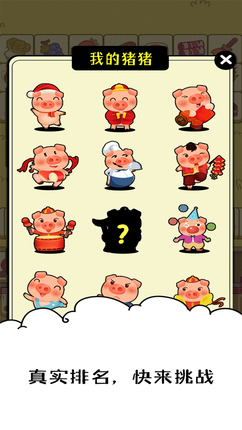 点击方块移动到卡槽,相同的方块就可以进行一次消除。消除场上的全部方块就可以过关。每次过关都可以获得一只可爱的小猪。